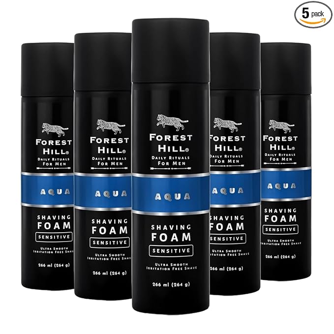 Forest Hill Pack Of 5 Aqua Pre Shave Foam For Men,goodness Of Olive & Argan Oil,mulberry,rosemary & Peppermint Extract,prevent Cuts & Burns,rich Lather,cooling Hydrating Formula (each 264g)
