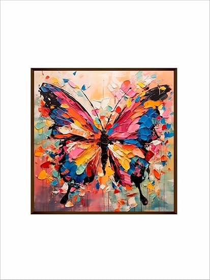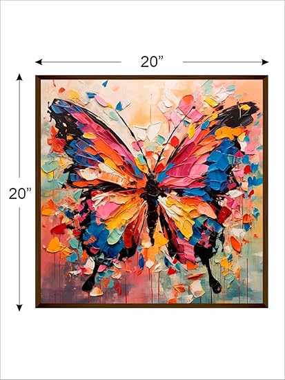Abstract wall painting for living- Colorful butterfly painting for home decoration with frame-Multicolor/20x20 inches/(50x50 cm)