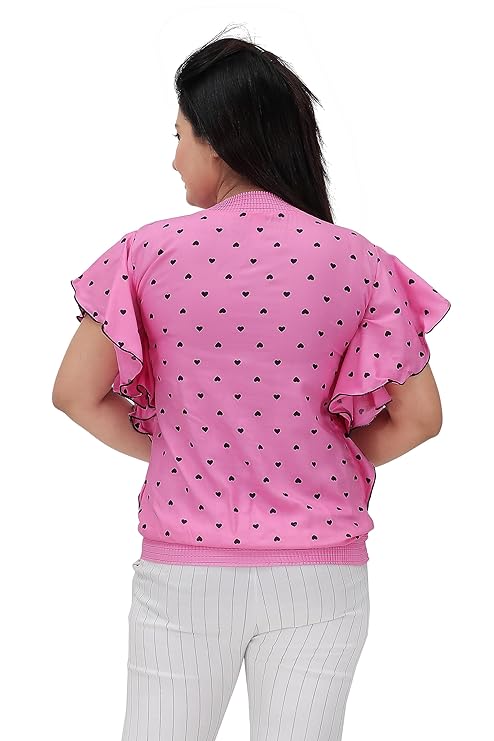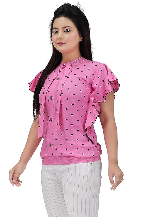 Rayon Regular Fit Casual Halted Neck Half Sleeves Heart Printed Tie Knot Top for Kids Girls