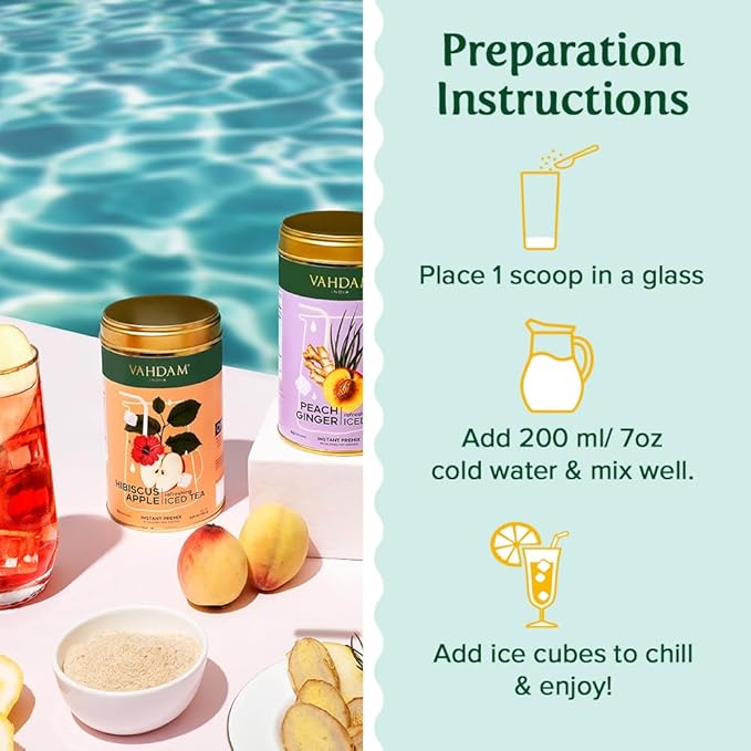 Apple Iced Tea Instant Premix (150g/5.29oz) 60 Servings | Lightly Sweetened Iced Tea | Tarty Hibiscus & Sweet Apple | Best for Mocktails & Cocktails |