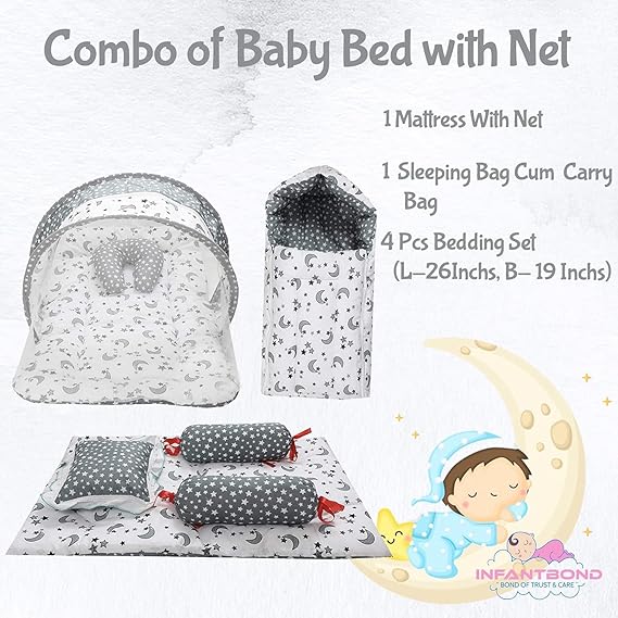 Designer Mattress with Net | Baby Sleeping Bag | Carry Bed (0-6 Months)