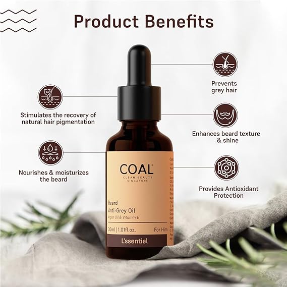 Beard Anti-Grey Oil with Darkenyl & Vitamin E | Restores Melanin & Slows Premature Beard Greying | Men | All Beard Types | 30ml