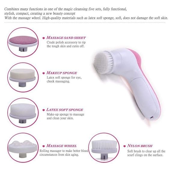Facial Kit Battery Powered Multifunctional Beauty Care Brush Deep Clean 5 in 1 Facial Cleaner Relief for Face Massage (Pink)