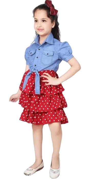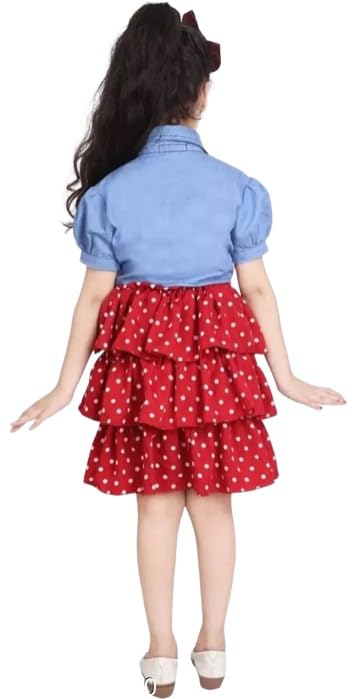 Girls Polka Dot Print Denim Jacket set