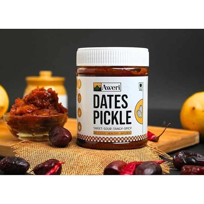 Dates Pickle (400g): Khajoor Ka Achaar | 100% Natural Homemade, Tasty, Healthy, Unique Pickle | Low Salt Less Oil | No Preservatives No Vinegar | Seed