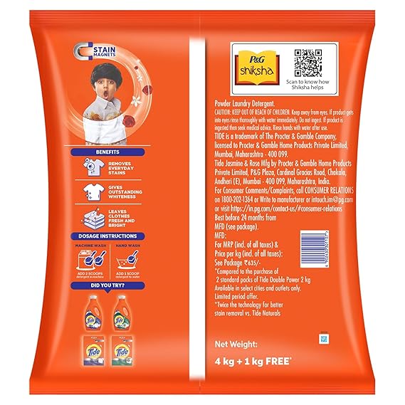 Detergent Washing Powder - 4 Kg + 1 Kg Free (Jasmine And Rose), 1 Count
