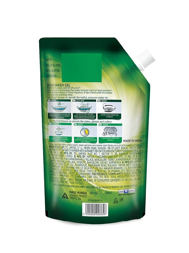 Liquid Gel Refill Value Pack, Kitchen Cleaner, Utensil Cleaner Liquid with Enzyme Technology, Neem Extracts and Citrus Fragrance, Lift Off action, 900