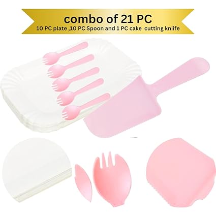 Pack of 21 Birthday Knife for Cake Cutting,Disposable Forks & Plates Set