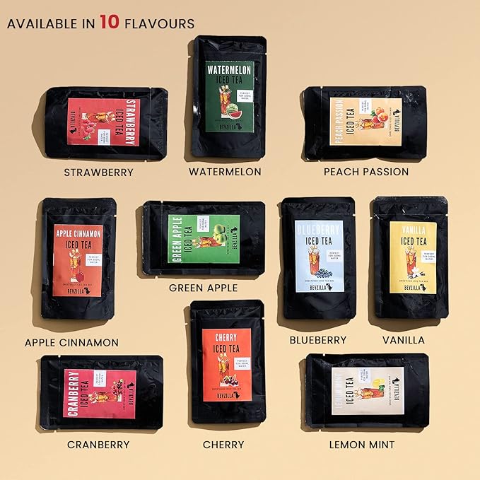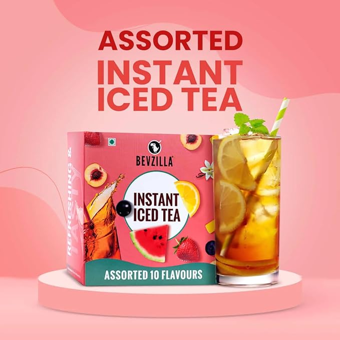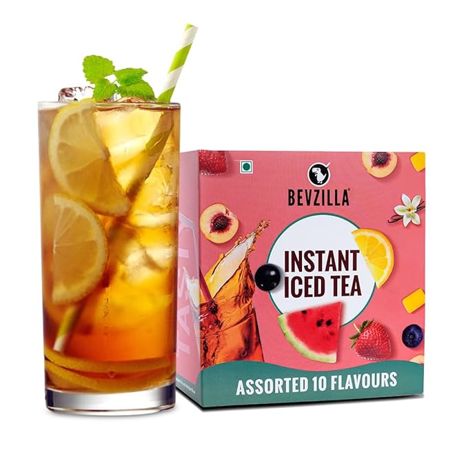 Iced Tea Powder Assorted 10 Flavours Pack, Ice Brew, Cold Brew, Strong and Highly Flavourful, No Artificial Ingredients, 30 Calorie Instant Ice Tea Po