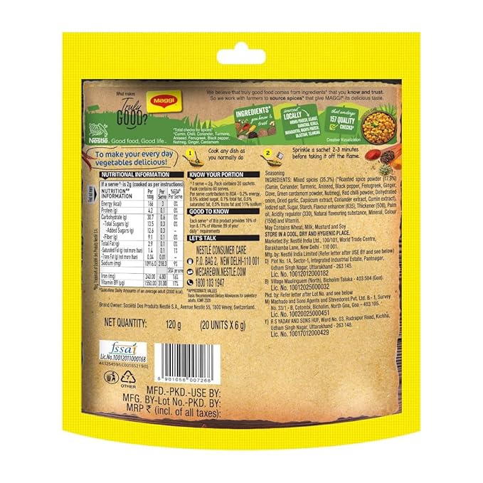 Vegetable Masala, All in One | 120g Pouch (6g x 20 Sachets)