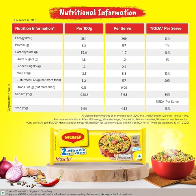 Instant Noodles, Masala Noodles with Goodness of Iron, Made with Choicest Quality Spices, Favourite Masala Taste, 70g ( Pack of 12 )