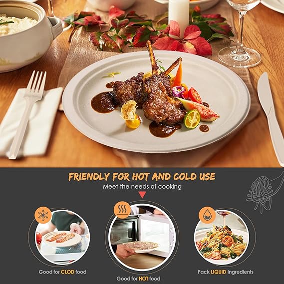 250pcs Disposable Paper Plates Set Compostable Party Supplies, biodegradable Dinnerware Include Paper Plates, Napkins, Utensils for Party Camping Picn