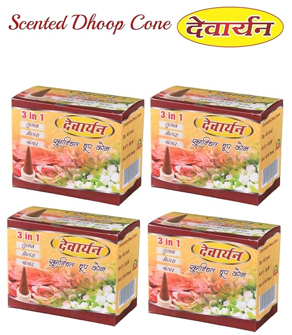 Scented Dhoop Cone Long Lasting Fragrance Rose, Mogra, Shrangar for Pooja Home Dhoop Batti Agarbatti 608 Gm (Pack of 4