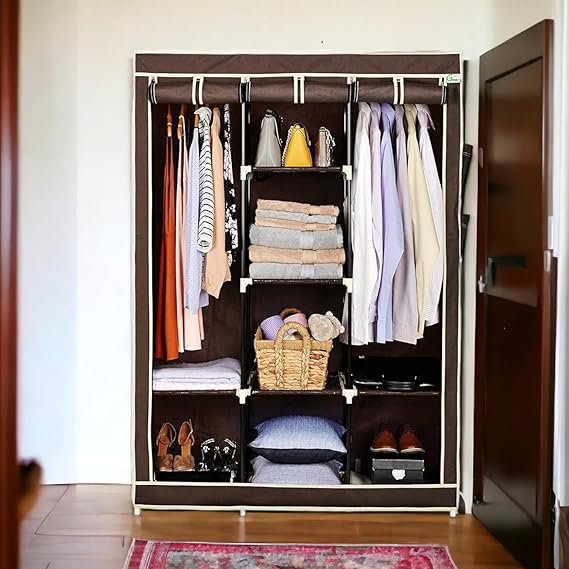Wardrobe Storage Organizer for Home, Cloths, Shoes, Foldable with 3 Door 10 Rack Storage Hard PVC Pipes
