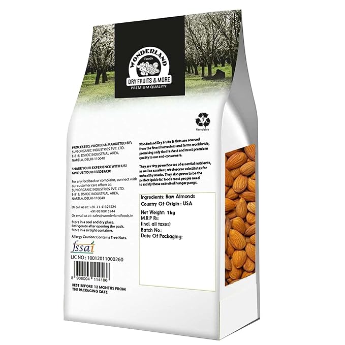 Almonds 1Kg Pouch Pack | Badam Giri | Nutritious & Delicious High in Fiber & Boost Immunity